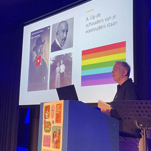 Harm Wesselink is mannencoach en schrijver van het boek ‘VrijMoedig’. Hierin wordt de geschiedenis van de homoman uitgelegd door verhalen uit de eigen jeugd en coming-out van Harm zelf. Tijdens de avond werden belangrijke grondleggers van de homo-emancipatie belicht en ook persoonlijke verhalen van Harm werden gedeeld. Een belangrijke vraagstuk dat door Harm aan het aanwezige publiek werd voorgelegd was ‘Wat geven we door aan de volgende generatie’. Dit leverde boeiende reacties en grappige anekdotes op vanuit de bezoekers en ook vanuit Harm Wesselink zelf.